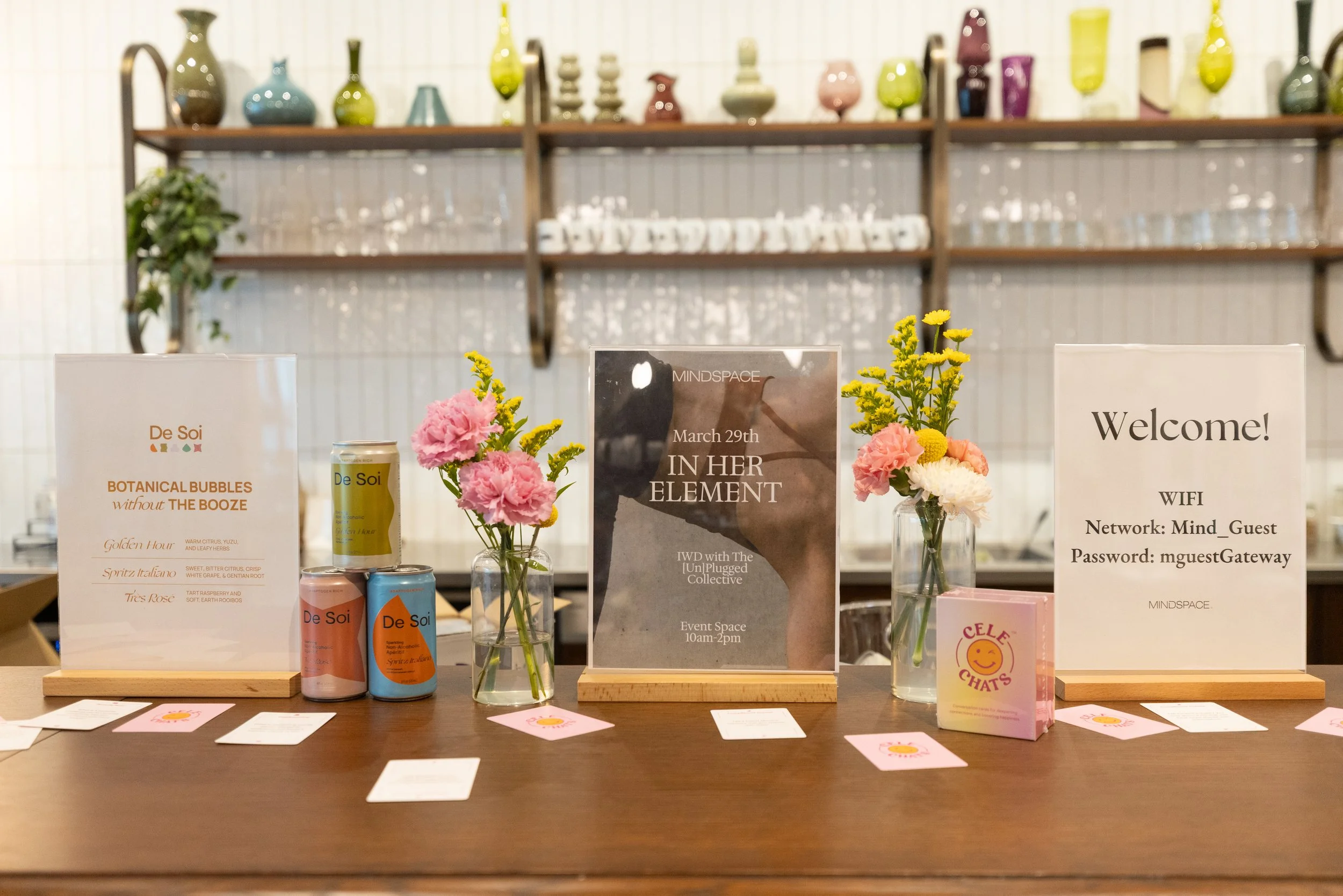 We wrapped the morning with a curated social hour featuring functional bites, mini wellness services, mocktails, and gifting from standout women-founded brands like De Soi, Rosebud Woman, Cowboy Colostrum, BOND, and so many more — all coming together in celebration of community, care, and living in our element.